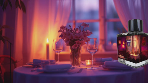 Introducing the February 2024 ink, drawing inspiration from a quaint table for two in a snug restaurant, bathed in the glow of a crackling fireplace, offering a charming view of the bustling street outside.
