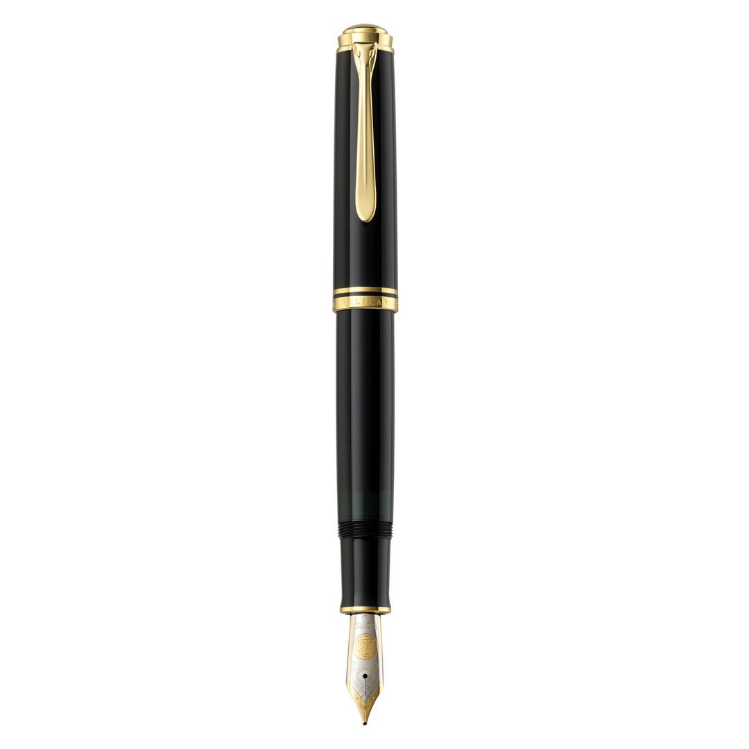 Introducing the Pelikan Souveran M1000 Black Fountain Pen, a symbol of elegance and sophistication that allows you to make a statement with your signature during significant and unforgettable moments. This exquisite fountain pen, embodying the pinnacle of quality craftsmanship, meets the highest standards for writing instruments.